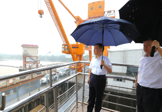 李国英在飞来峡水利枢纽勘察汛情和工程运行情况